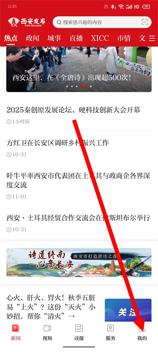 1. 打开西安发布客户端,轻轻点击底部导航栏里的“我的”。