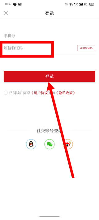 4、输入收到的短信验证码,勾选同意后,点击登录按钮,完成账号登录。
