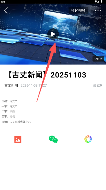 3、当进入新闻播放页面后,只需点击视频区域,就能观看到该期古丈新闻的完整视频。