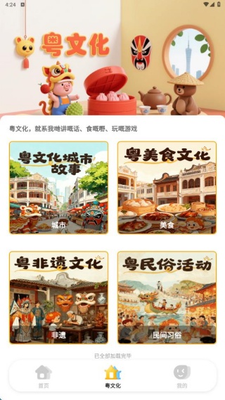 2. 在粤文化板块,知悉非遗、民俗等故事详情。