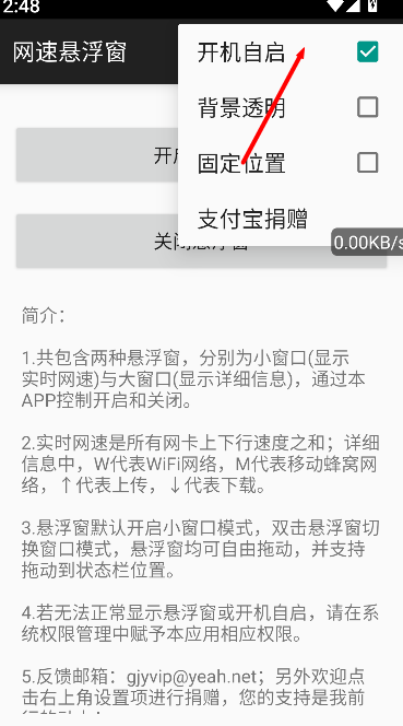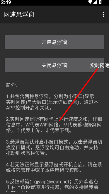 1. 打开软件后,首先在权限设置里开启悬浮窗口,以保证网速可以在屏幕上方呈现。