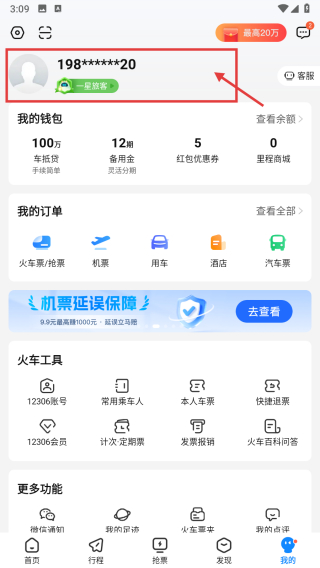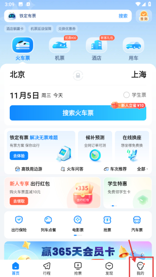 1. 进入出行类应用的首页,轻点底部的“我的”选项,从而进入个人页面。