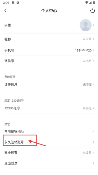 3、于个人中心页面,点选永久注销账号这一选项,随即进入账号永久注销页面。