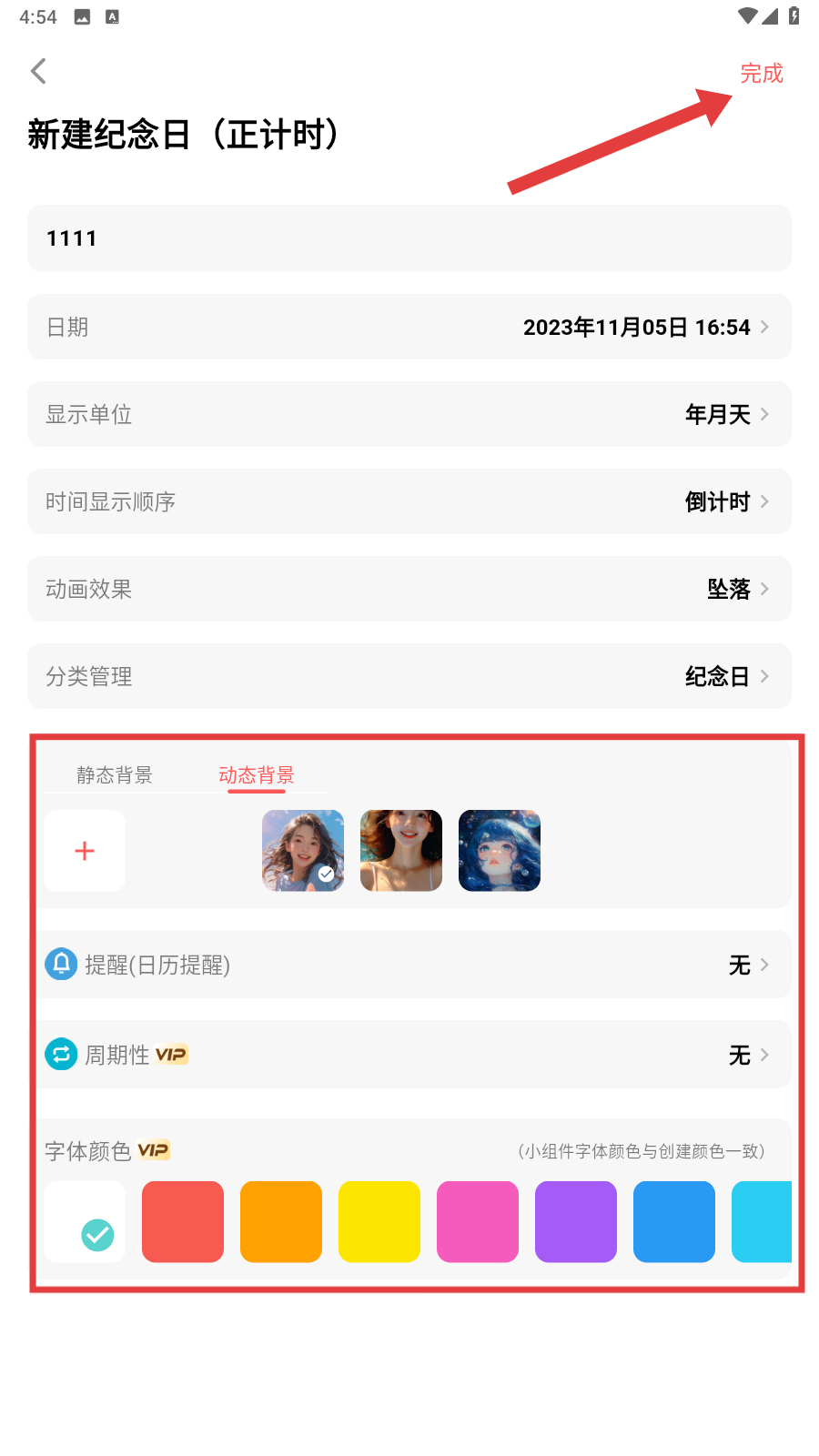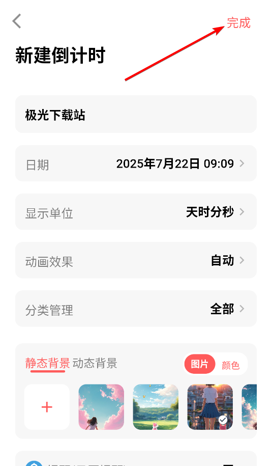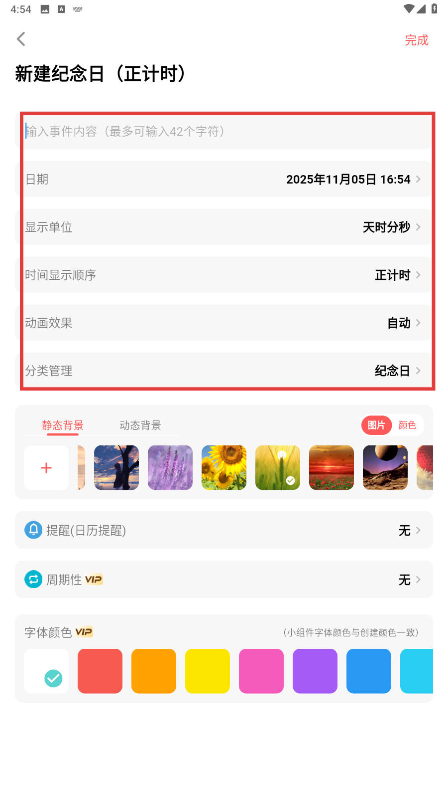 4、完成相关设置后,轻点右上角的【完成】按钮,即可保存该纪念日倒计时,重要时刻自此轻松记录。