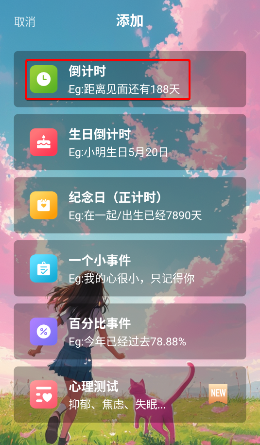1、倒计时创建方式多样:可创建多个不同的倒计时,涵盖生日、纪念日、考试等各类重要日期。