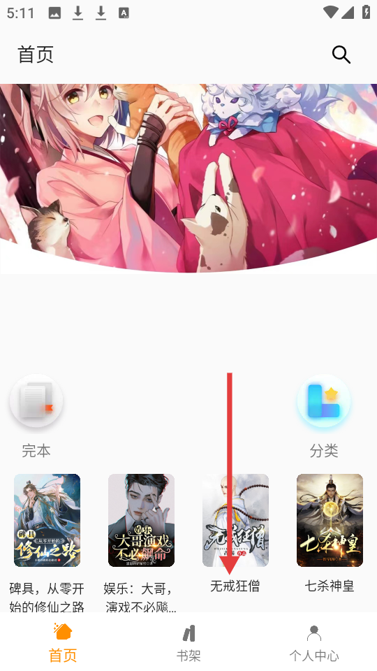 1. 于首页寻觅到感兴趣的小说,例如【无戒狂僧】,接着点击进入详情页面。