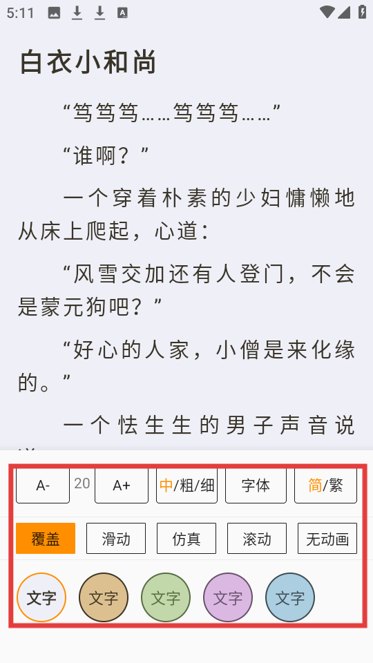 4、于界面设置里,能够对【字体】【字号】【简/繁】等阅读参数进行调整。