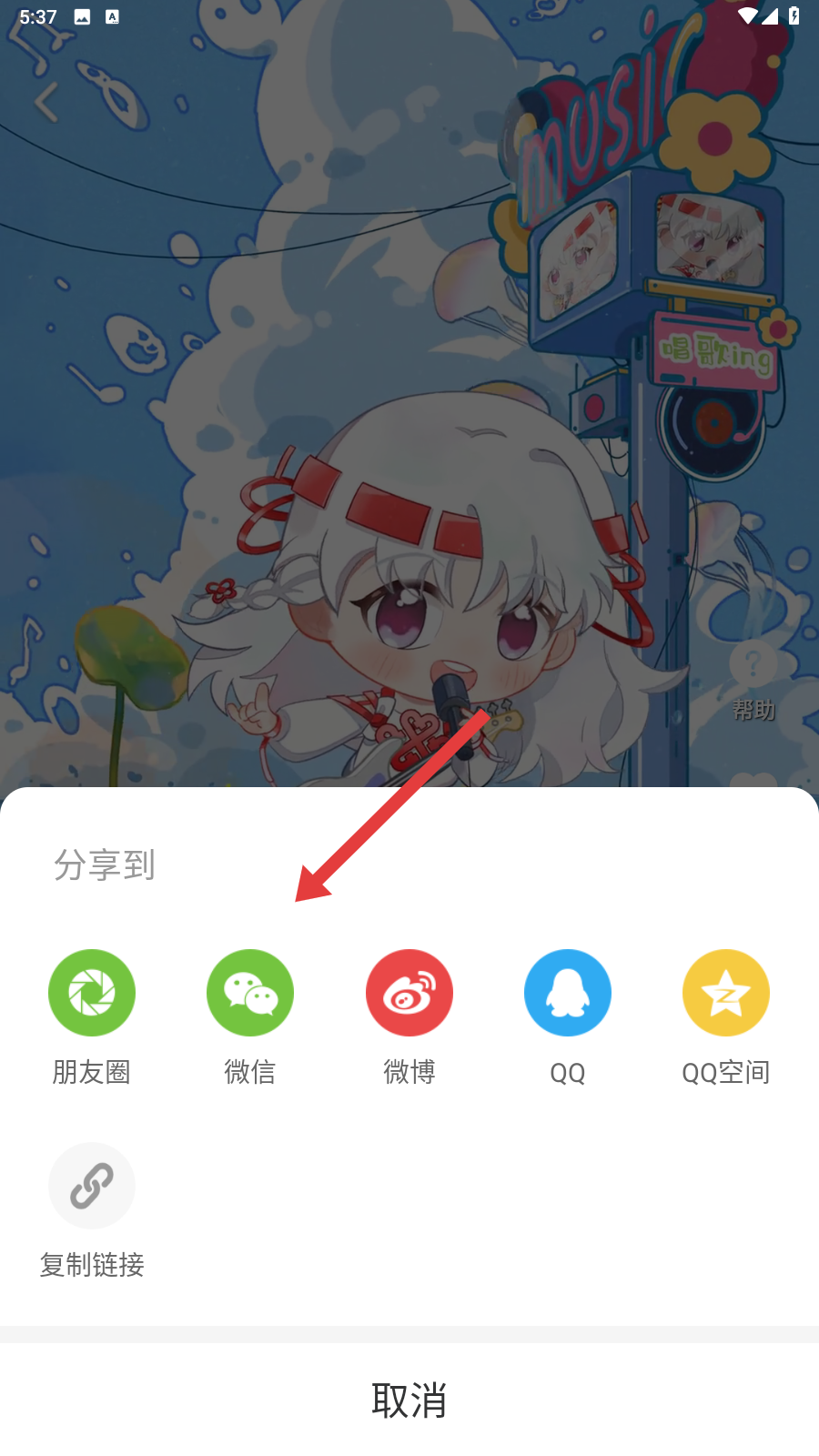 3、于功能选项里,点击【分享】按钮,即可看到分享渠道列表。