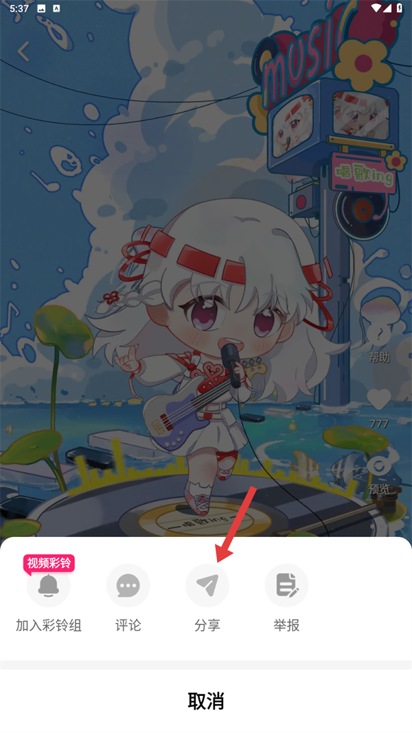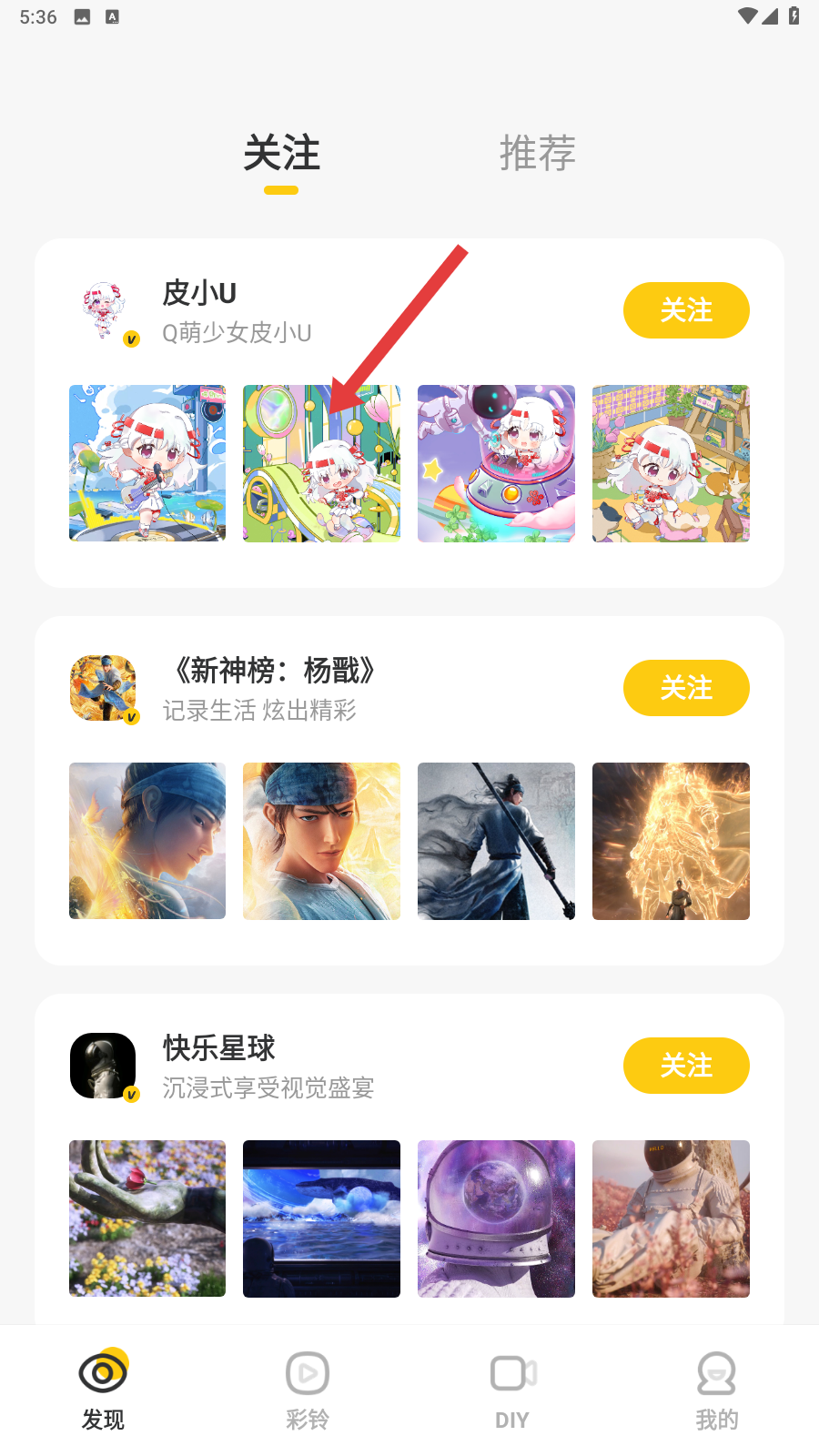 1要是在关注页瞧见心仪的彩铃作品,比如【皮小U】的彩铃,轻点一下进入详情页面,就能进行分享啦。