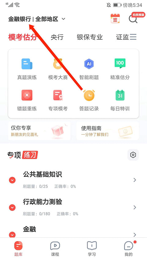 4、回到应用主页,你会在左上角看到考试目标以及报考地区,至此省考设置已完成。
