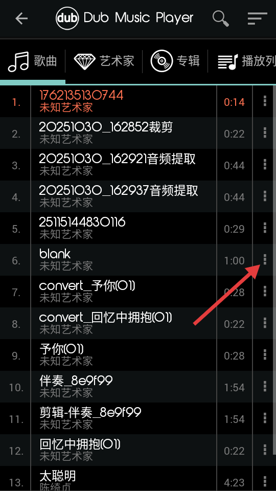 2. 在歌曲列表里,点击目标歌曲右侧的【三点】图标,以展开操作菜单。