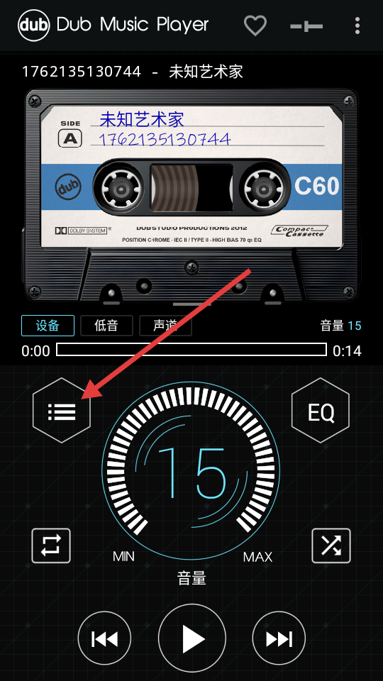 1. 在Dub音乐播放器的界面上,轻点左侧的【乐曲列表】图标,即可进入歌曲列表。