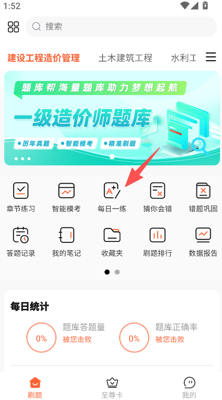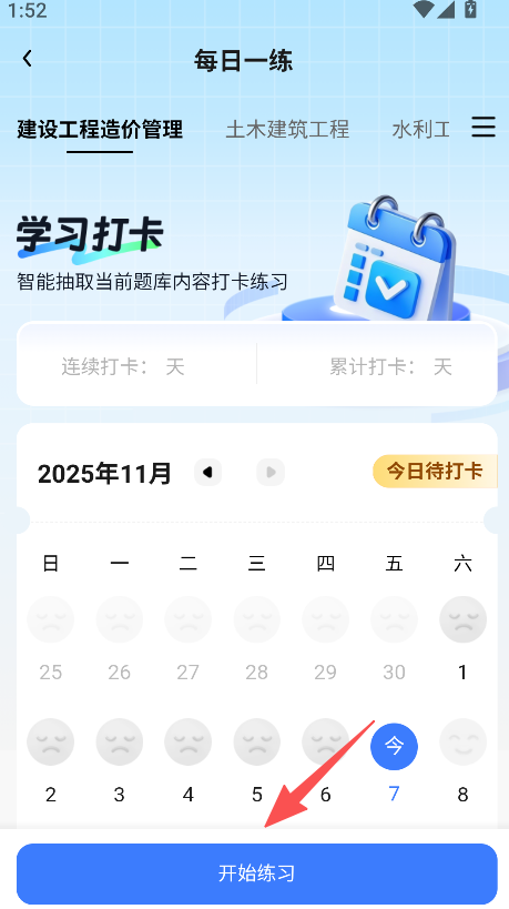 1. 先点击“每日一练”,挑选好日期后,再点击“开始练习”。