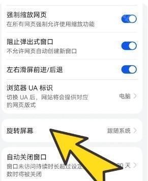 2、进入浏览设置界面后,找到并点击旋转屏幕。