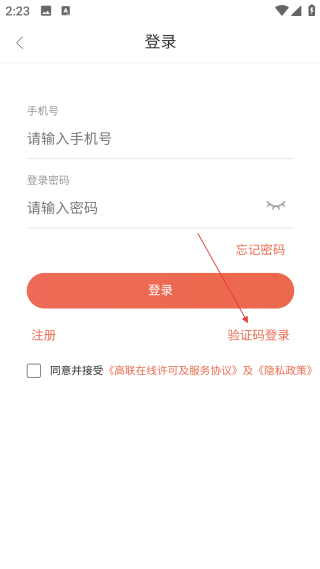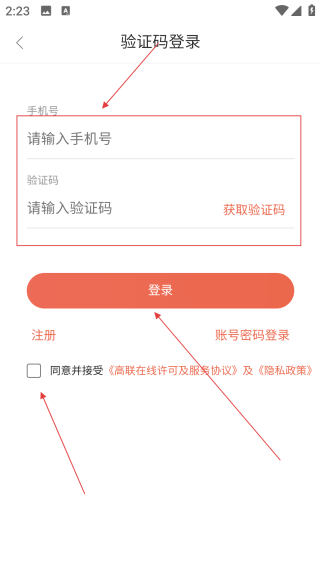 4、在填写页面,输入【信息并勾选协议】后,点击【登录】按钮,就能完成账号登录操作。