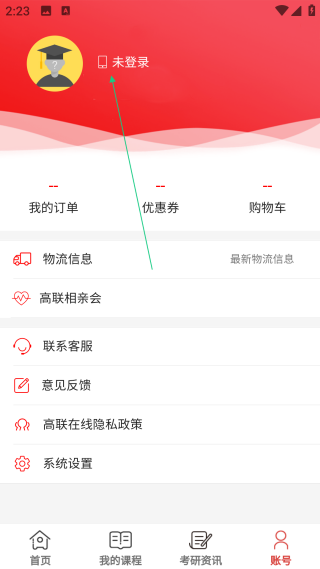 2、于账号页面,点击【未登录】区域,随即进入账号登录的选择界面。