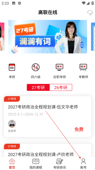 1. 于首页处,点击底部的【账号】,即可进入个人账号相关操作页面。
