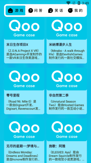 Qoo玩游盒是一款充满趣味的游戏盒子,为广大玩家呈现海量精选与热门的游戏玩法。它具备丰富多样的功能,涵盖了各种热门及最新的游戏功能。不仅能智能推送趣味十足的游戏玩法,持续推送最新的游戏工具,还提供众多趣味游戏功能,在线试玩功能更是多种多样。