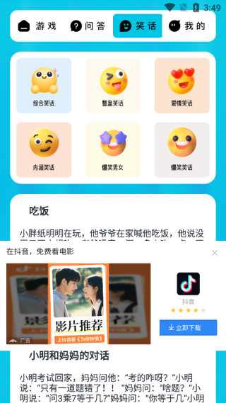4、具备笑话互动功能,同时精彩热门游戏功能也等你来体验。