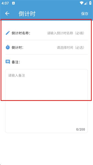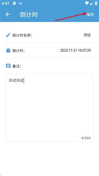 2. 在倒计时页面录入倒计时信息内容,同时添加备注信息。
