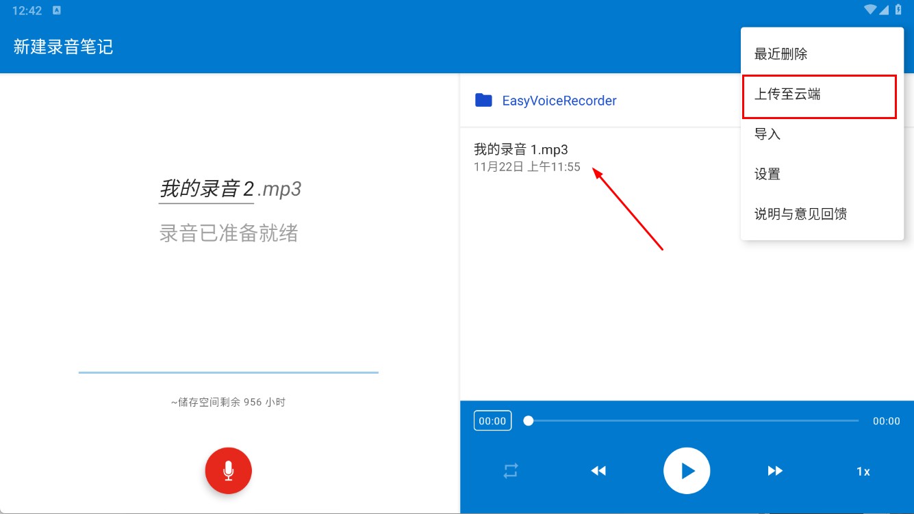 4、轻点录音文件旁的菜单,从中挑选上传至云端这一选项,对重要录音进行备份,防止文件遗失,确保会议或课程录音的安全性。