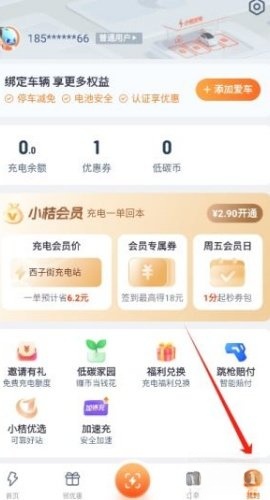 4、进入“我的”栏目,你能够查看账户余额与优惠券,还能绑定个人车辆,从而享受更多优惠。