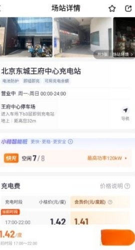2、点击你想要前往的充电站,便能查看是否存在充电空位以及详细的价格信息。