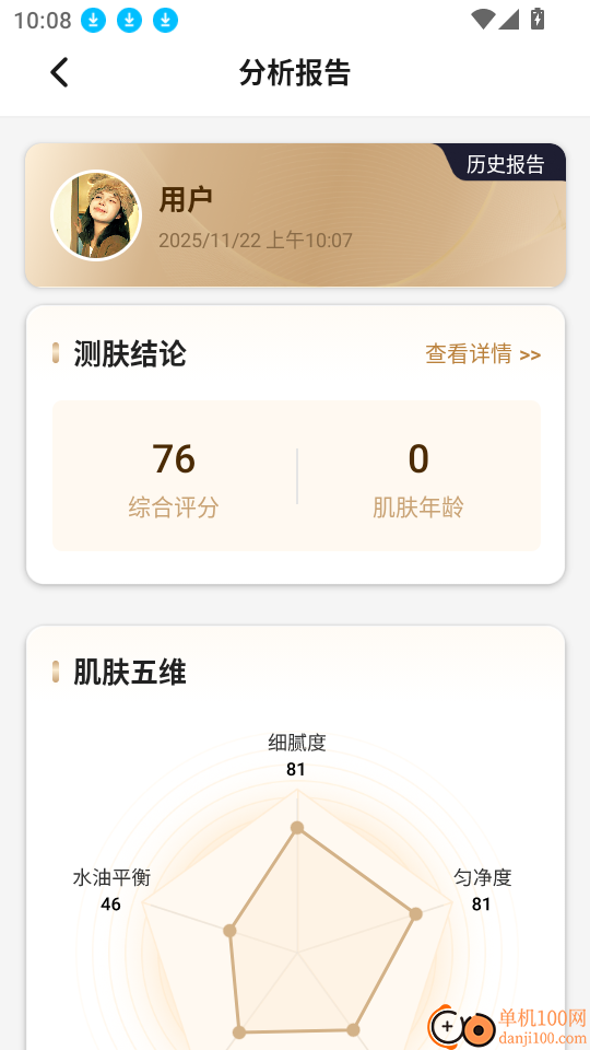 5、这样便能查看自身的肌肤分析状况,查看详尽的报告。