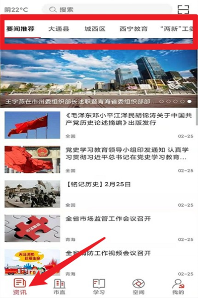 2. 登录成功后,系统会默认跳转到“资讯”页面。在此页面,用户能够浏览推荐要闻以及分类新闻信息,从而便捷地知晓最新动态。