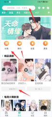 1、第一步,打开软件进入首页,首页上有各式各样丰富的漫画资源,同时还设有不同的漫画分类。
