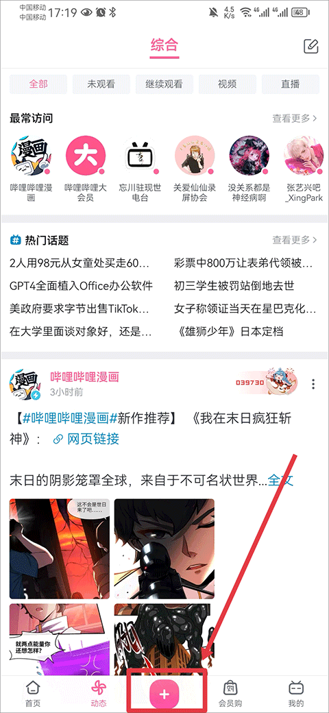 3、追踪UP主的精彩动态,和伙伴一起刷B站热点。