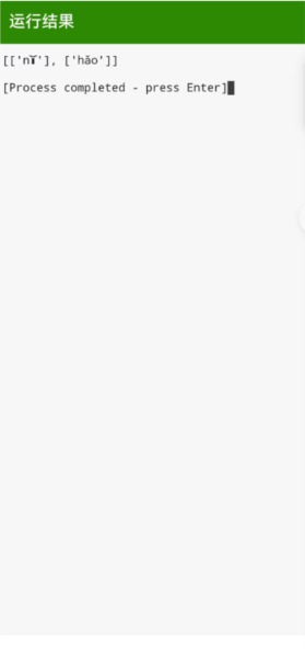 print(pypinyin.pinyin("你好呀")) # 这里在“你好”后加了个“呀”字,整体功能不变,仅修改文本内容
