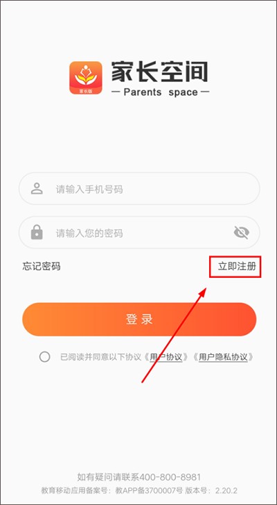 1. 进入家长空间,点击首页的【注册账号】,便可开始注册。