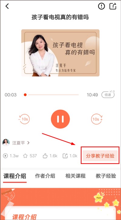 (1)在任意课程下方点击"分享教子经验”按钮。