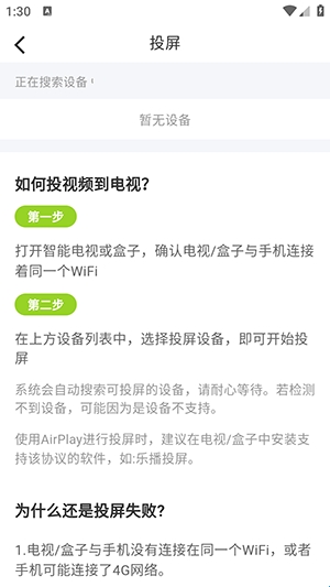 3、等待软件搜索投屏设备投屏即可。