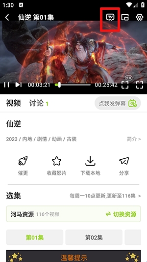 2、在播放界面,点击右上角的TV图标。