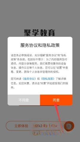 1、第一步,打开应用,认真阅读服务协议与隐私政策,确认无误后点击“同意”进入。