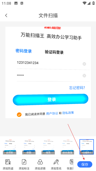 4、在文件扫描页面挑选好合适的效果后,点击【保存】按钮,就能完成此次文件扫描操作。