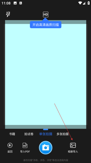 2. 当进入扫描页面后,你能够选择【相册导入】功能,从而从相册中调取文件并进行扫描处理。