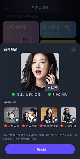 1. 打开通义千问首页,找到并点击自定义唱演选项,接着创建音频模板。