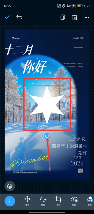 上传图片后,对其位置、圆角、透明度以及旋转角度进行调整。