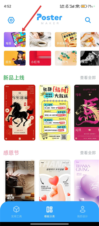1. 开启海报制作大师,于模板分类页面点击【海报】这一模板分类,进而进入相应的模板列表。