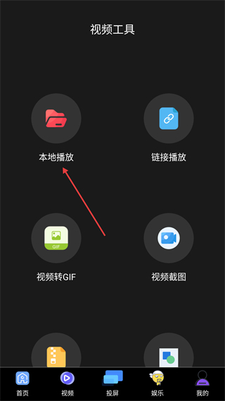 1. 在【视频工具】页面,点击【本地播放】选项,此时会弹出存储权限请求的弹窗。