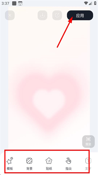4、于模板编辑页面,借助工具完成编辑操作后,点击“应用”,就能应用此DIY壁纸。