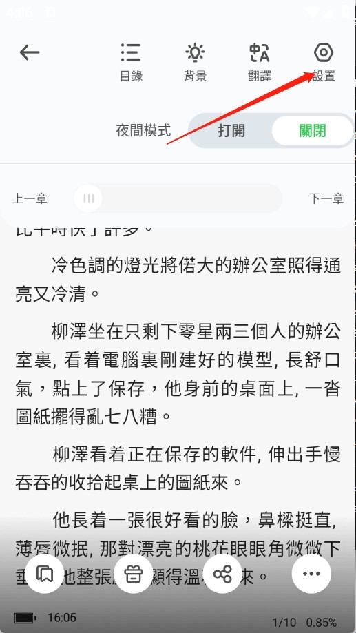 1、用户需先点开想看的小说,进入阅读页面后,点击屏幕的任意地方。