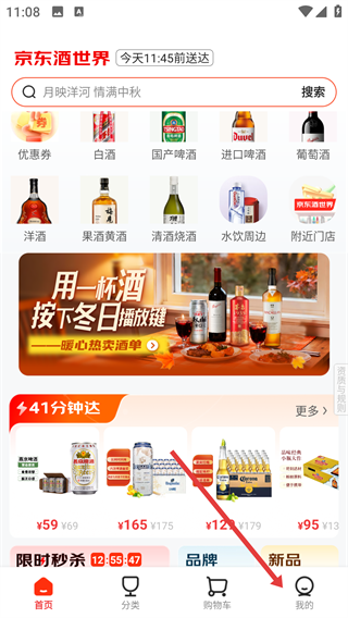 1启动京东酒世界应用后,点击界面中的“我的”选项,这是开启加盟申请流程的首个步骤。