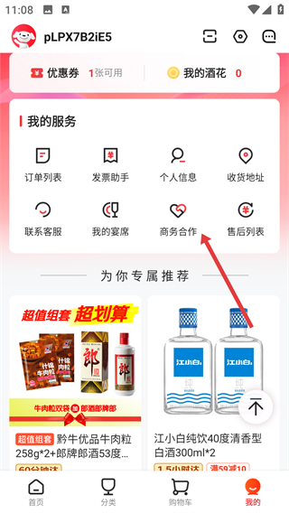 2进入个人中心页面后,找到“商务合作”相关入口并点击,即可跳转至合作详情页面。