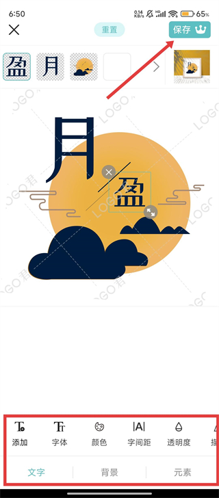 4、在编辑页,我们可以调整文字、字体、颜色等,完成后点击【保存】,专属Logo就制作好啦。