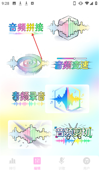 1. 进入【编辑】界面,能够选择【音频拼接】功能来开展相应的音频操作。