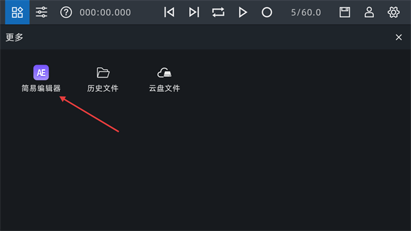 2在更多功能选项里,找到并点击【简易编辑器】这一选项,即可进入简易音频编辑的操作界面。